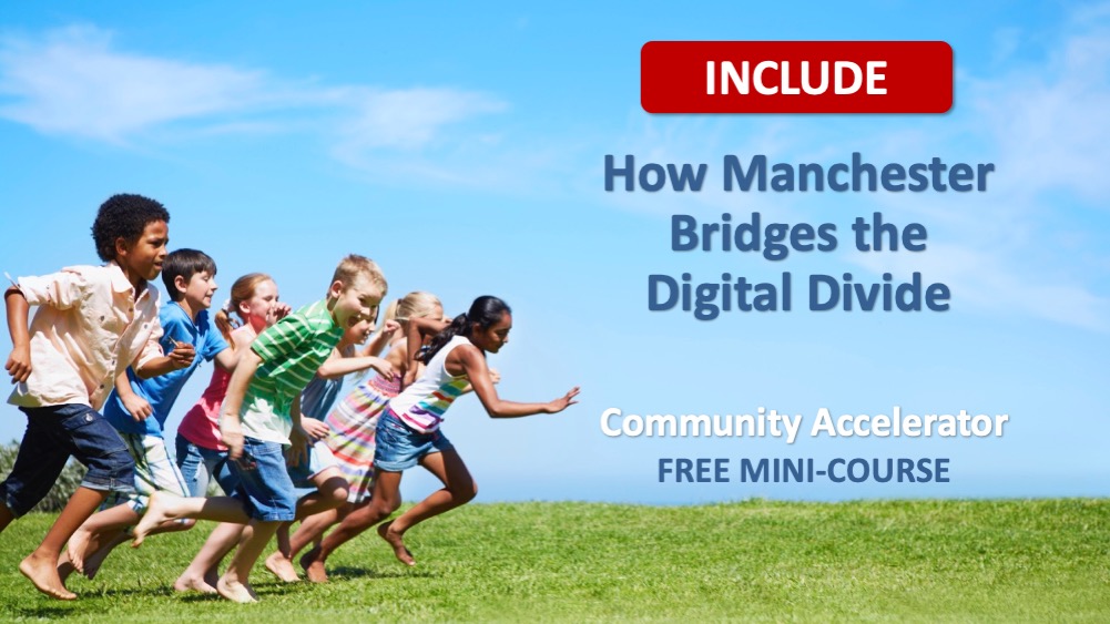In this free 8-minute mini-course, you will learn how a British city with a post-industrial legacy of poverty provided the access, training and motivation to connect its most deprived citizens with online opportunity. The mini-course is adapted from Include, Course 6 on digital inclusion, in the Community Accelerator online training course from the Intelligent Community Forum.